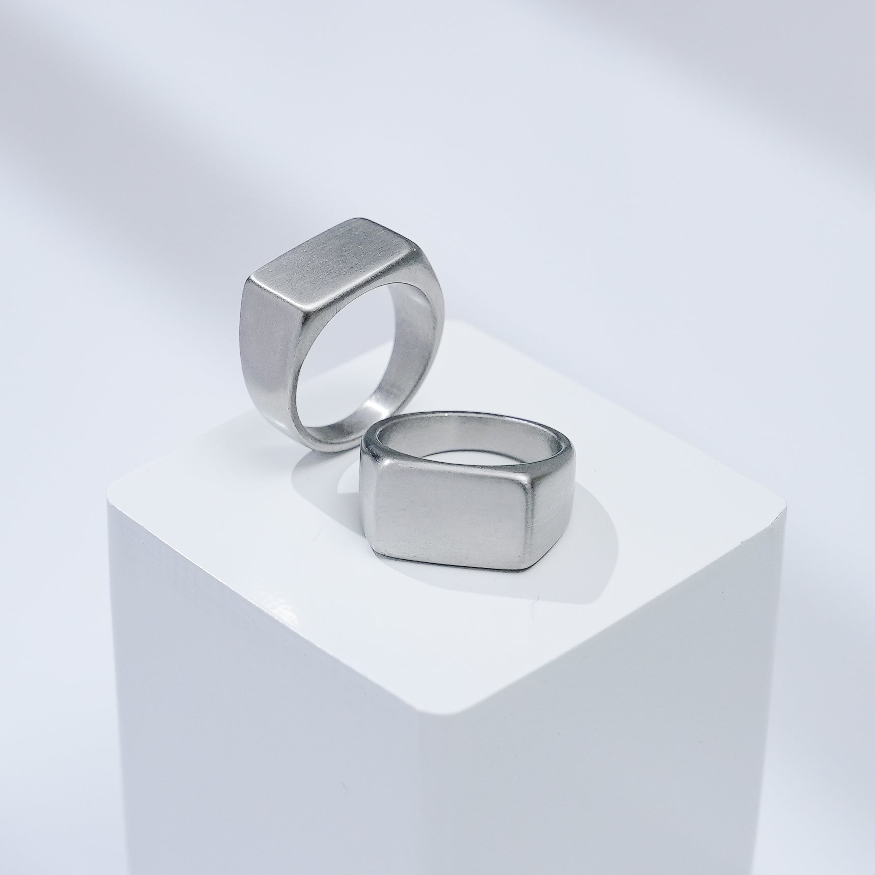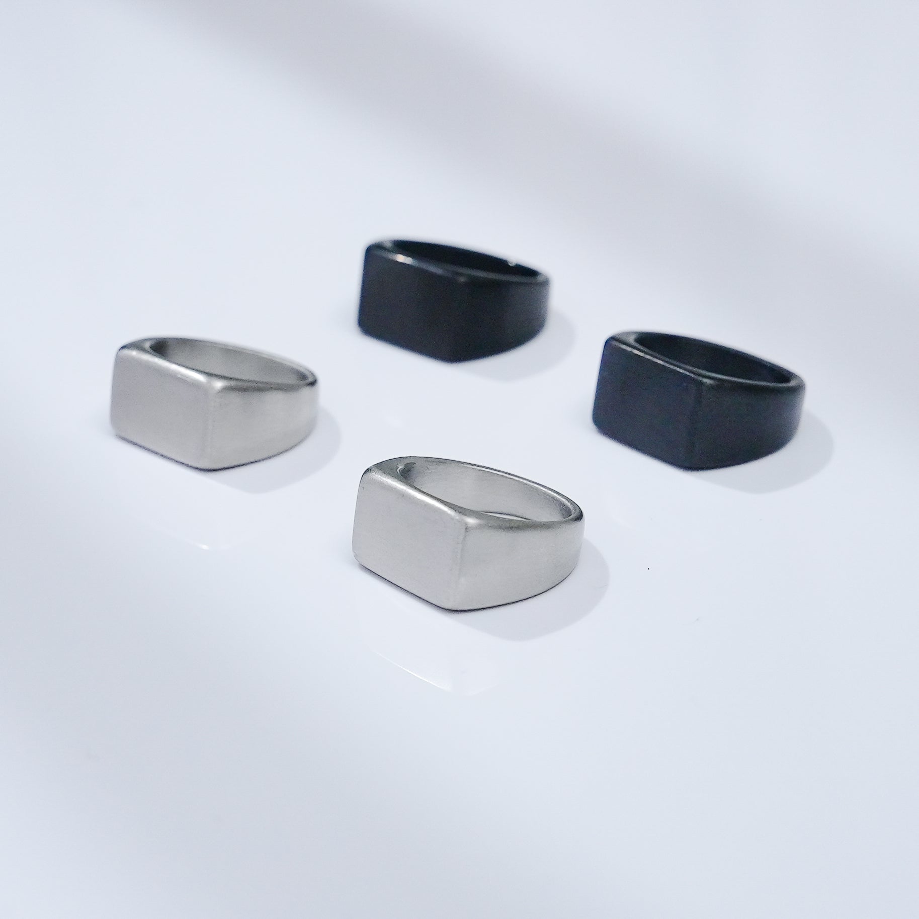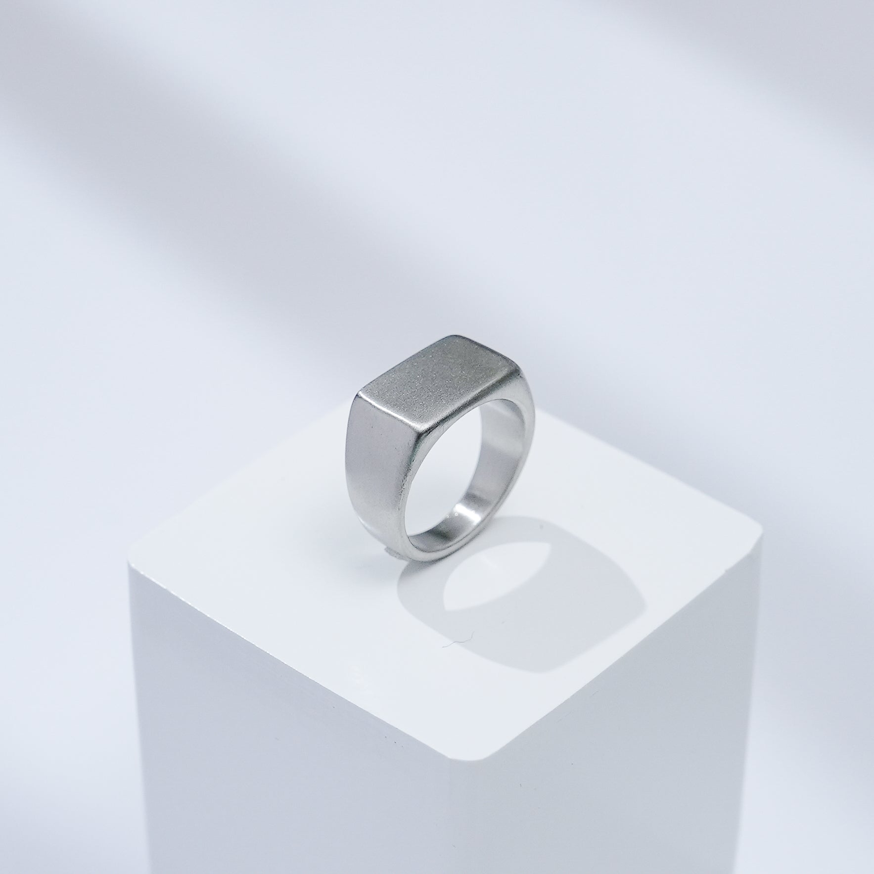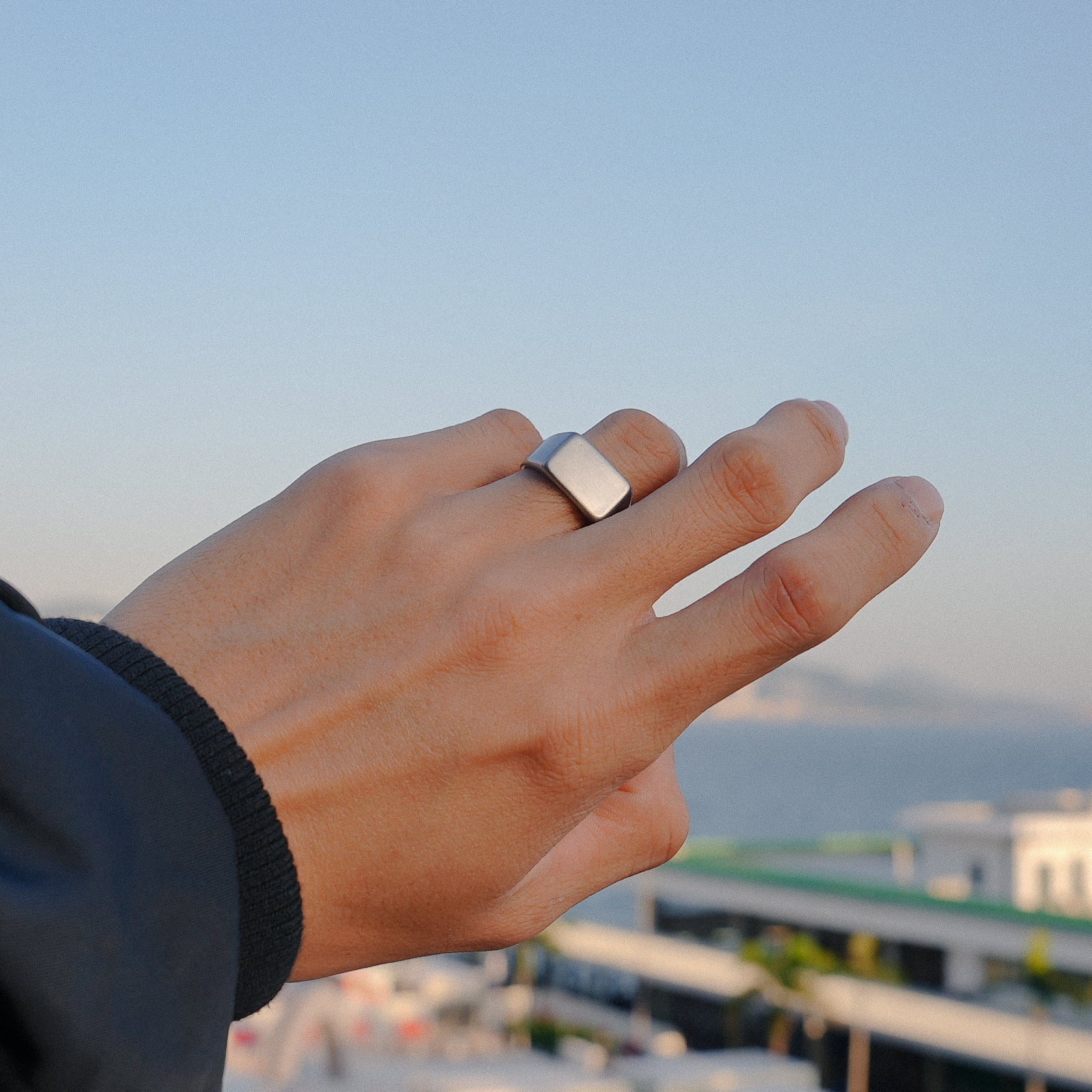 這款戒指以高級鈦鋼材質打造,採用沙面噴砂工藝,呈現低調啞光質感,結合簡約幾何線條設計,兼具時尚與耐用,細膩而有型。